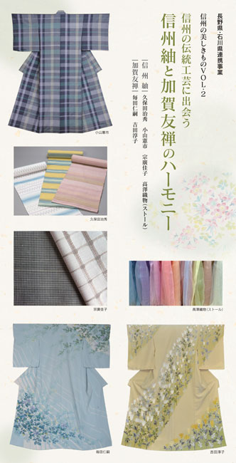 東京の銀座NAGANO 2階イベントスペースにおいて、信州の美しいきもの VOL.2として「信州の伝統工芸と出会う 信州紬と加賀友禅のハーモニー」展が1月14日(水)から17日(日)までの4日間開催されます。